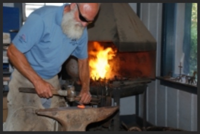 When Jud was 21 he worked for a man tempering steel and shoeing. With the money he made, he paid half the price for a blacksmith shop, with his uncle putting up the other half of the money. In 1934 Jud and his wife Jenny were married and he built his own shop. In 1941 Jud went to Jacksonville, Florida, to do blacksmithing for the Navy and stayed there until 1945.