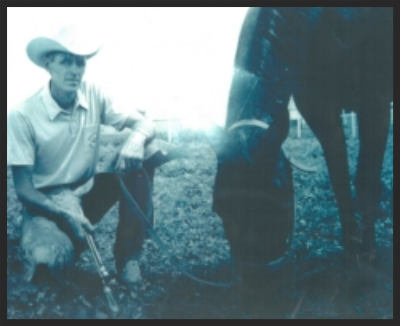 In his career that spanned some 70 years, this man shod a total of 9 World Champions, 5 of which were shod in one year. He is the only man in history to be asked to lecture for 3 years at the American Quarter Horse Congress in Columbus, Ohio, and the only farrier to have a display of 37 hand-forged shoes at the Cowboy Hall of Fame in the Western Arts Division in the Exhibit Hall at Oklahoma City, Oklahoma.