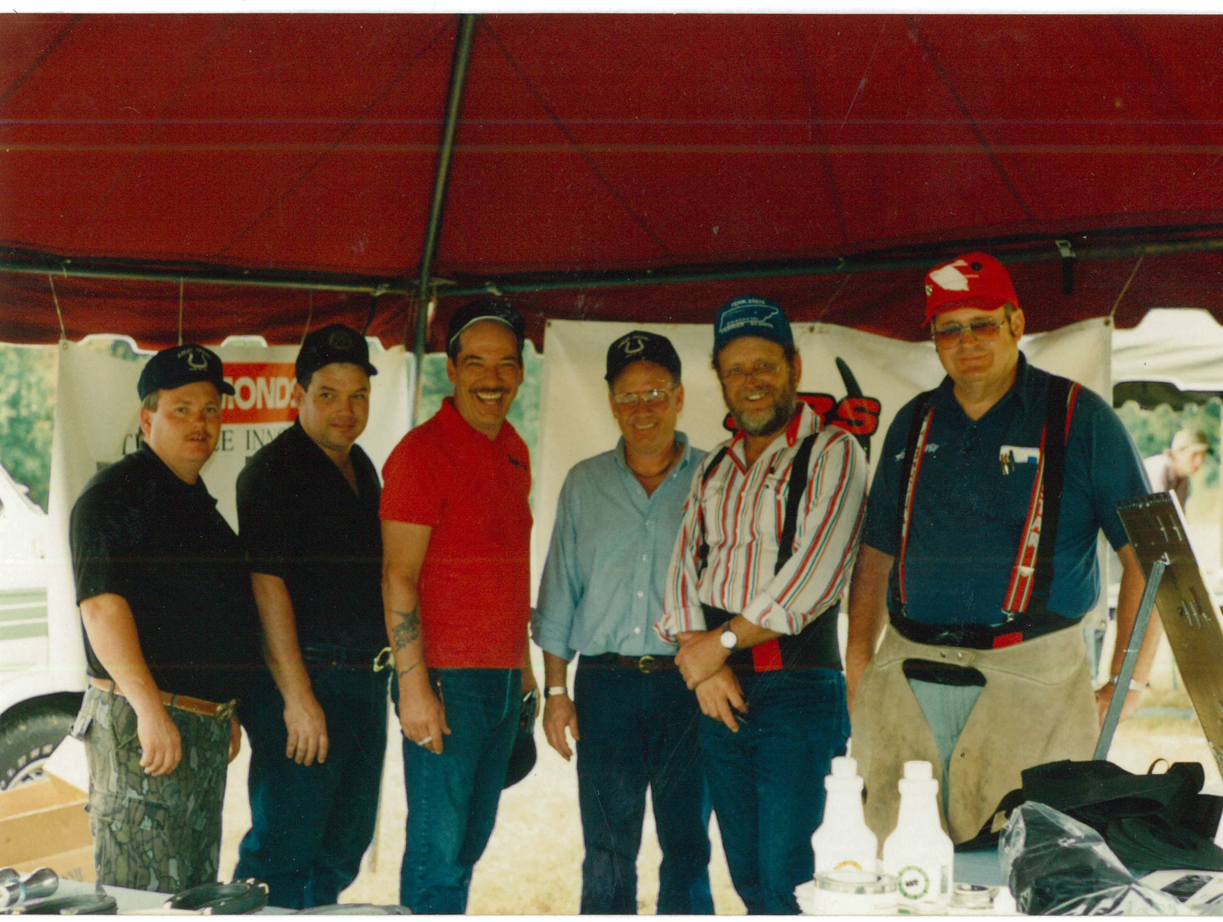 9-9-1992 Grand opening of First Farriers Research Lab at BWFA hdqtr. in Georgia. (L-R) Farrier friends: Ronney DeBoard, Tom Kennedy, Ralph Casey, John Claudon, Bucky Hatfield, Bob Peacock.