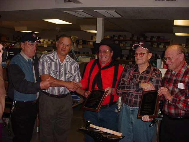 Jack Roth, Oklahoma Horseshoeing School, BWFA Farriers Hall of Fame 2020 Inductee. At far left in this photo during our BWFA Student Farrier Contest at the BWFA Headquarters Convention 2004