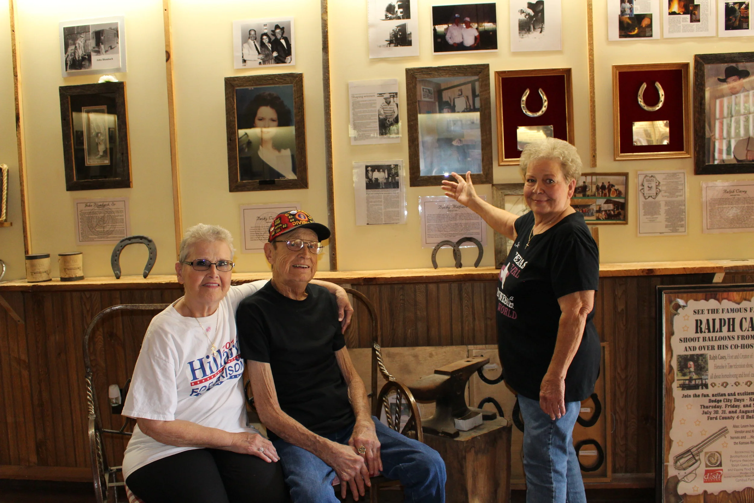 2016 Bucky Hatfield with his sisters in front of his BWFA Hall of Fame display.